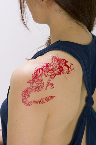 イベントやお祭りに大活躍!レギュラーサイズのTATTOOシール「線画・赤ドラゴン」。