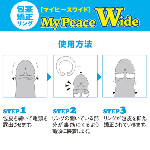 ロープライスで人気の包茎矯正リングが3倍ワイドになってバージョンアップ!従来よりもさらにズレにくく、外れにくくなりました♪包皮を剥いて簡単ワンタッチに装着!亀頭を露出して清潔さをキープしつつ、付けていることで徐々に剥きグセをつけてくれる矯正リングです。