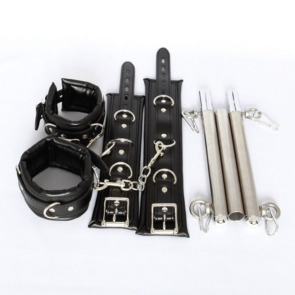 M字開脚や背面での四肢拘束が出来る本格的な拘束棒と手枷、足枷のセット商品です。