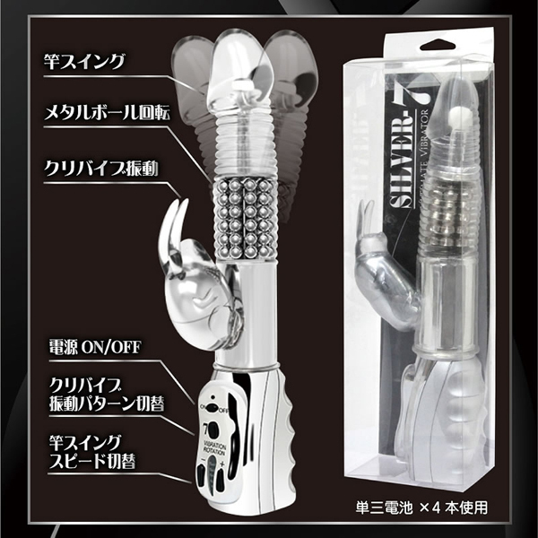 クリを猛撃する7パターン振動とパワフルな6段階スウィングに加えて、内蔵されたボールのゴリゴリ回転でアッという間に昇天!あまりの気持ち良さに連続絶頂♪単3電池×4本使用