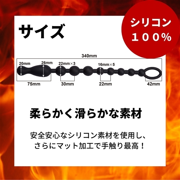 100%ピュアシリコンで作成した安心安全な10個のビーズが連なった取っ手付きのアナルビーズです。