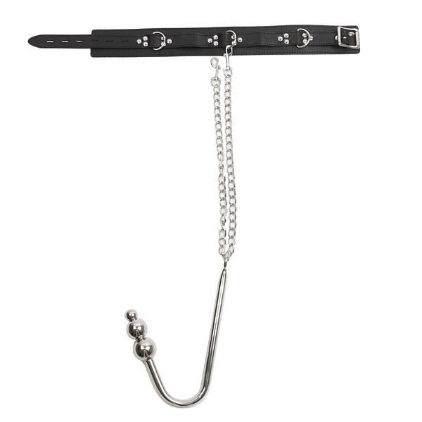 首輪とチェーンで繋げば、ア○ルフックの重さで首輪も引っ張られるといった凌辱プレイや立った状態で吊り上げて使用すれば、吊り上げる刺激、緩めた時にフックが抜けない様にア○ルを締めさせる調教も出来ます。