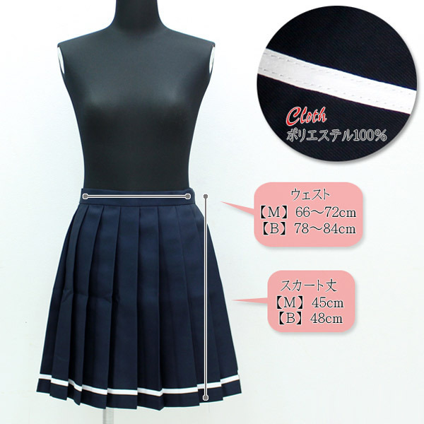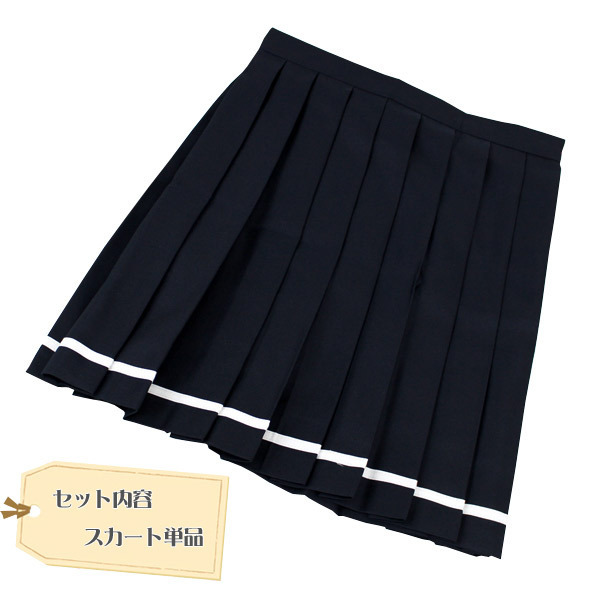 BIGサイズ:W78〜84cm スカート丈48cm セット内容:スカート単品(横ファスナー、アジャスター調節可) 素材:ポリエストル100% 無地プリーツスカート単品 色:紺×白ライン