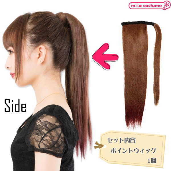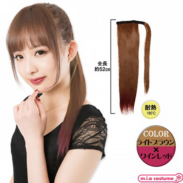 マジックポニーで簡単イメチェン♪二つ使えばツインテールにもアレンジ可能!地毛に馴染みやすいサラサラの毛質で、発色の良いライトブラウン×ワインレッドのカラーリングはライブなどのイベントにもおススメです!