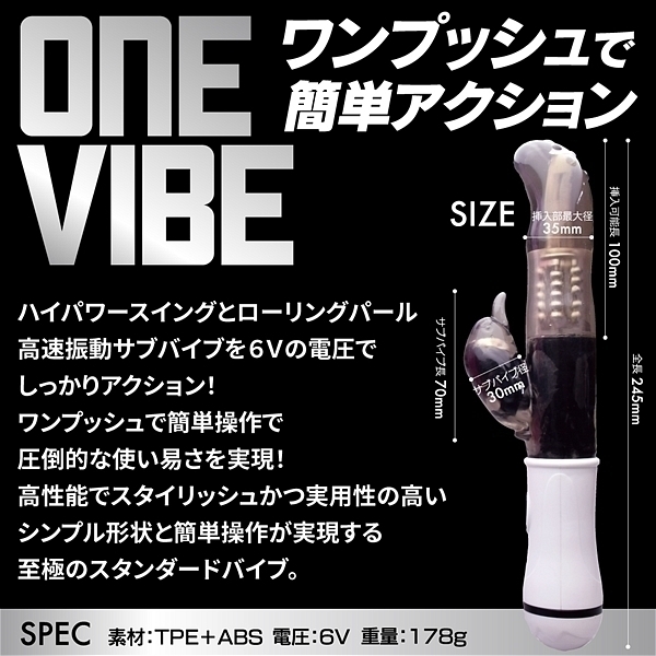 強力なスイングとローリングパール・高速振動サブバイブを6Vのハイパワーでワンボタン・ワンプッシュで簡単操作!パターンもワンアクションで圧倒的な使い易さを実現!高性能でスタイリッシュかつ実用性の高いシンプル形状と簡単操作が実現する至極のスタンダードバイブ。