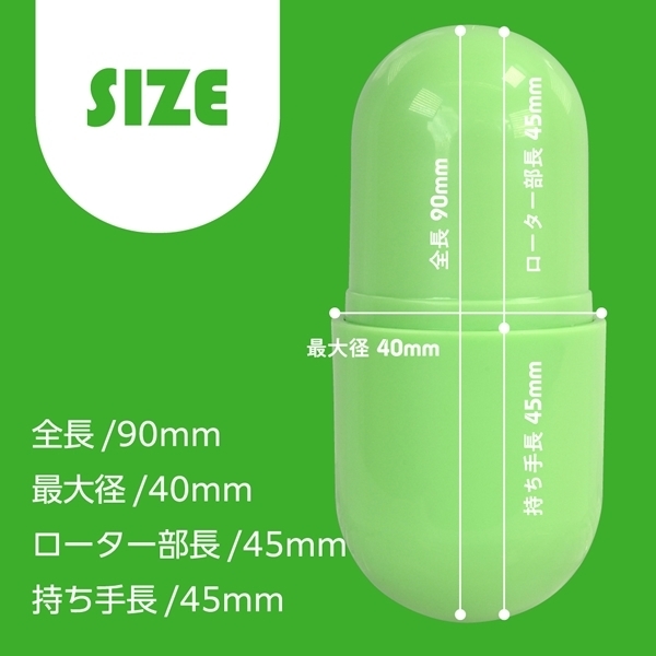 爽やかなグリーンカラーが特徴のカプセル型アイテムです♪シンプルでありながらスタイリッシュなデザインが魅力的!持ち運びに便利な蓋付きで、安全に衛生的に保管できます♪特殊重振動モーターを搭載し、深い部分まで届く心地良い刺激を楽しむことができます!IPX5の防水性能を備えているので、しっかり洗えていつでも清潔に使用可能♪5段階の強弱調整と5種類の振動パターンを組み合わせた10種類のアクションで、さまざまな体験ができます♪