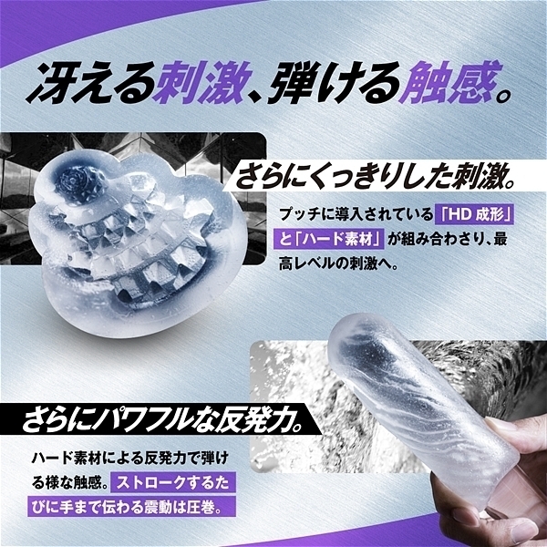 <キャンディー内部構造>「密集した四角錐の高刺激」整然と敷き詰められた四角錘の突起<クリーム内部構造>「吸い込まれるトルネード構造」斜めに擦り上げてくるヒダはクリームのように昇りつめる絶頂感<ベリー内部構造>「全体を覆う繊細で優しい突起」フワフワとした起毛が包み込みまったりしたなめらかな触感<カカオ内部構造>「反り返りのあるヒダの多層構造」ビッシリ並んだヒダは反発しながら複雑に絡みつく刺激
