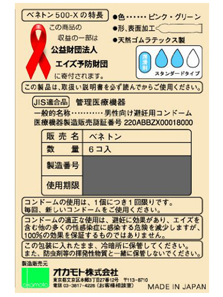 お洒落コンドームの定番品!オカモト社と人気ブランド「ベネトン」のコラボコンドーム(6個入)。
